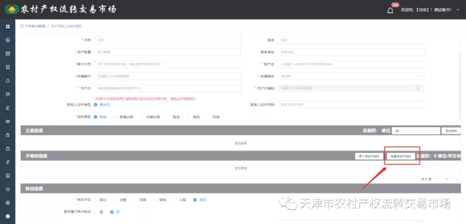 农户承包土地经营权,通过下载模板批量上传子地块信息